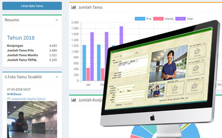 Aplikasi resepsionis digunakan untuk mencatat setiap data tamu yang datang. Setiap tamu akan diambil foto secara otomatis. Resepsionis akan meminta Kartu ID tamu dan menginputnya ke dalam sistem. Data tamu tersebut dikirim ke server secara real time.